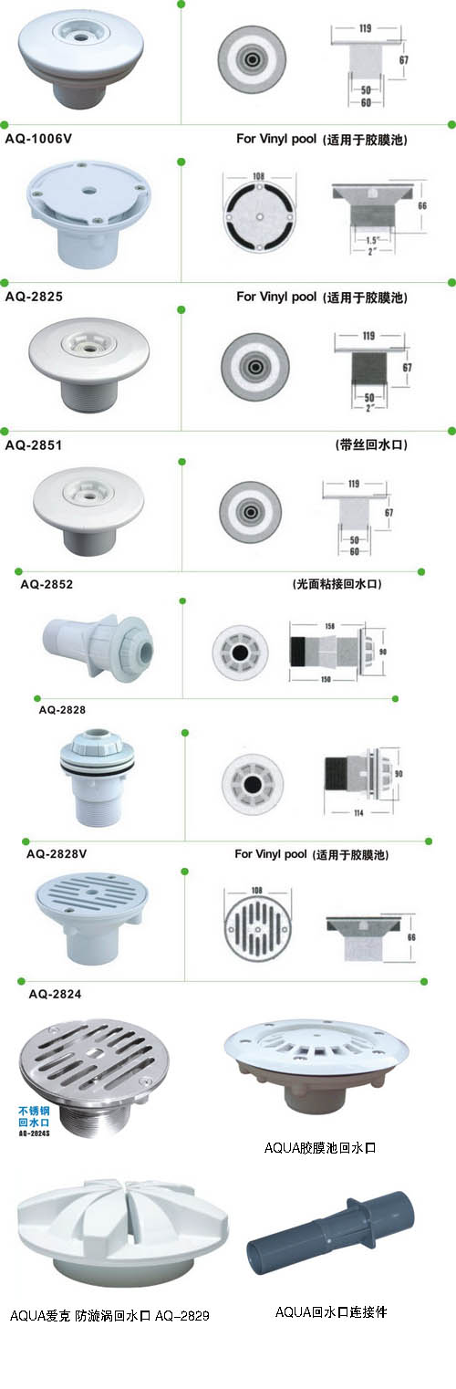 AQUA膠膜池回水口型號:AQ-2825V
